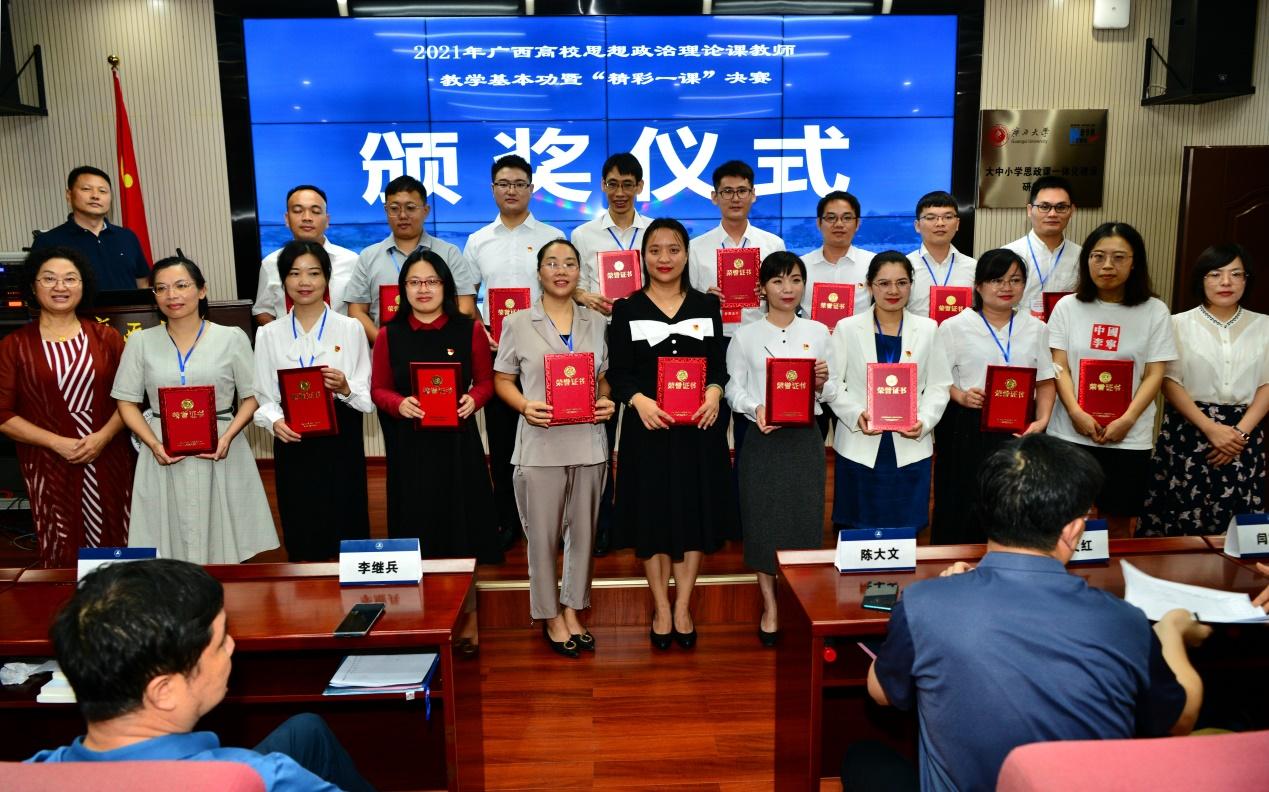 为深入贯彻落实习近平总书记关于深化思想政治理论课改革创新和加强“四史”教育的重要指示精神,充分发挥思想政治理论课铸魂育人作用,推动广西高校思政课高质量发展,进一步提升思政课教师教育教学整体素质,培养和选拔优秀思政教育人才,充分发挥思政课骨干教师理念引领、教学示范和科研带动等作用,2021年9月25日,由自治区党委教育工委、自治区教育厅主办,广西大学马克思主义学院、北部湾大学马克思主义学院、广西高校思想政治理论课骨干教师研修基地(广西大学)承办的2021年广西高校思想政治理论课教师教学基本功暨“精彩一课”决赛在我院举行。