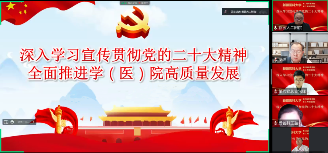 近日,新疆医科大学第四临床医学院组织开展了学习贯彻党的二十大精神线上宣讲会,由青马班学员作为宣讲主体,用贴近青年人的语言,宣传教育和引导青年学生深入学习二十大报告,引起青年学生的共鸣,不断凝聚起团结奋进的青春力量。