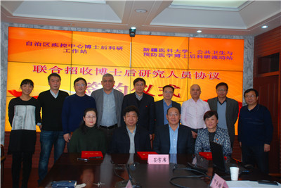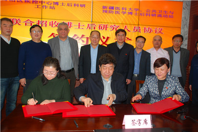 新疆医科大学耿直副校长、公共卫生学院刘涛院长和新疆维吾尔自治区疾病预防控制中心崔燕主任分别代表三方共同签署了《三方联合招收博士后研究人员协议》,这对推动我校博士后工作更好发展,进一步促进新疆公共卫生与预防医学产、学、研合作,培养公共卫生与预防医学高层次科技人才奠定了坚实的基础。(辛萍审 李建华编发)
