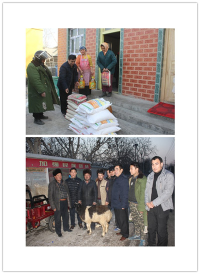 1月15日,在中华民族传统节日春节即将来临之际,新疆医科大学驻芒来乡达汗村工作队和村两委的同志们一道,共同走访、慰问了村里的四老人员、贫困户,为他们送去了大米、面粉、清油、煤以及羊肉等物品,并致以节日的祝福。