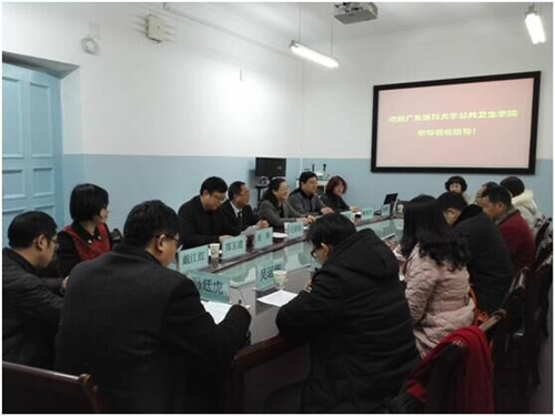 2017年1月19日上午,广东医科大学杨云滨副书记一行六人到我校公共卫生学院座谈交流,到访的有广东医科大学杨云滨副书记、公共卫生学院刘卫红书记、唐焕文院长、倪进东副院长、教学科研科副主任科员孙铭薇、医院管理处吴运华科长,我校党委委员、中医学院党委书记毛新民,公共卫生学院肖辉书记、刘涛院长、李富业副院长、郑玉建所长及相关教研室主任参加了会议,会议由肖辉书记主持。