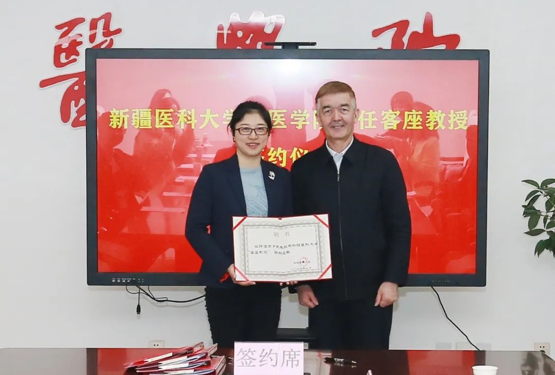 3月31日下午,新疆医科大学中医药楼里气氛热烈,校党委副书记、校长阿吉艾克拜尔·艾萨为北京中医药大学的费宇彤教授和北京大学的孙凤副教授颁发了我校客座教授聘书。