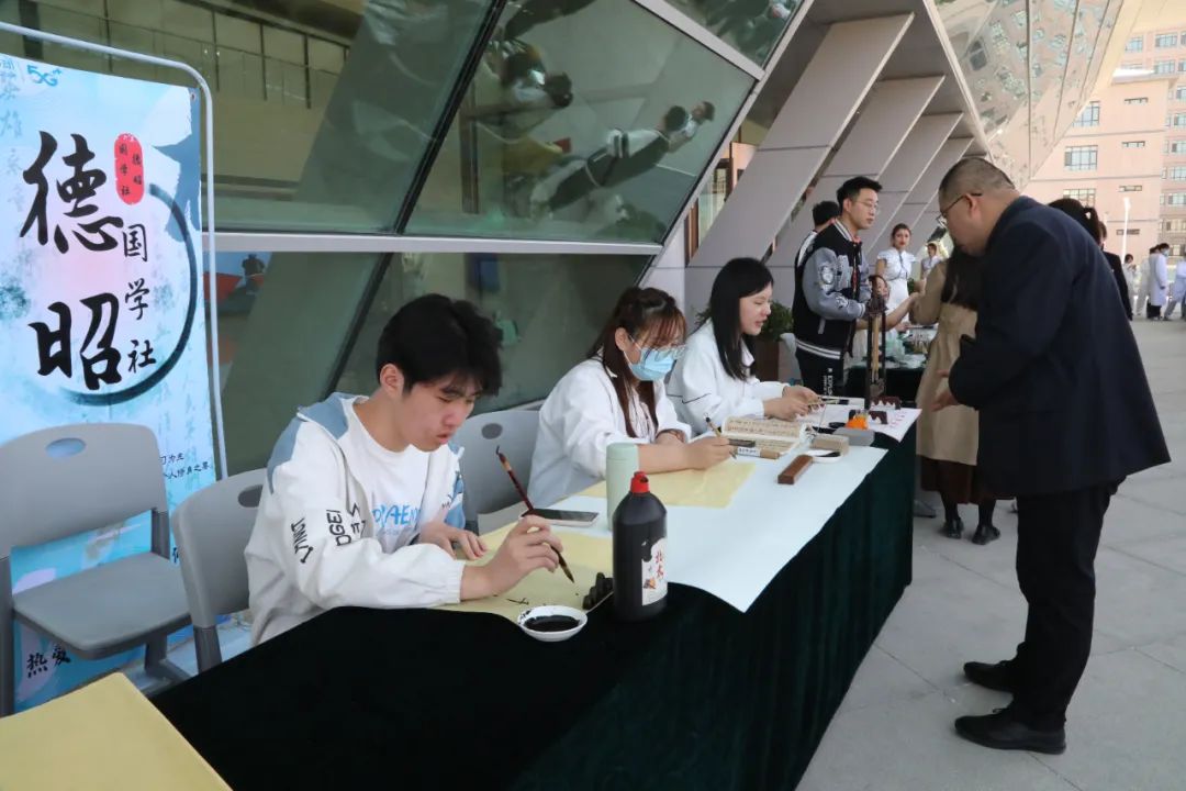 本届中医药文化月的主题是“高举旗帜、建功新时代,传承创新、发展中医药”。活动现场设置了中药香囊制作、针灸推拿体验、国术社八段锦和武术、经典诵读、茶道、书法表演和中医药品展示等七大展区,让新医师生们能够零距离体验和感受传统中医药文化。