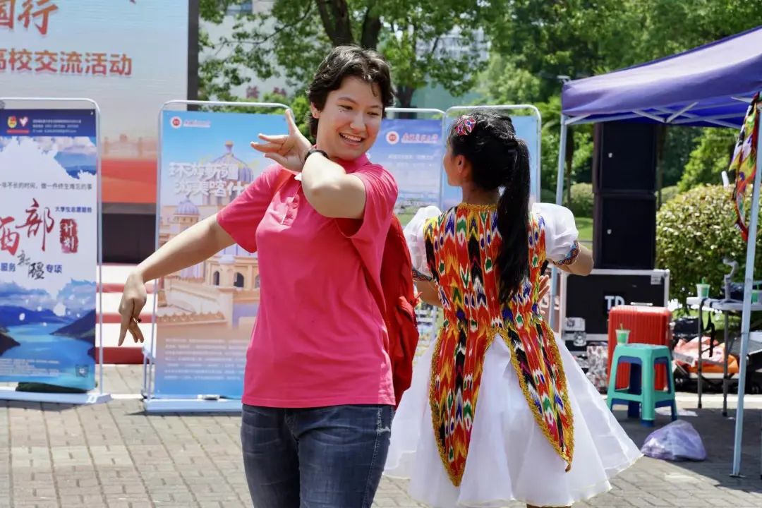 5月28日,新疆医科大学“石榴籽 祖国行”民族团结实践团23位师生走进南京医科大学开展新疆特色展示、特色市集巴扎、“草坪音乐会”文艺活动、“新疆故事”主题座谈分享会等,用青春歌舞、特色文化展示活动,讲好新疆故事。