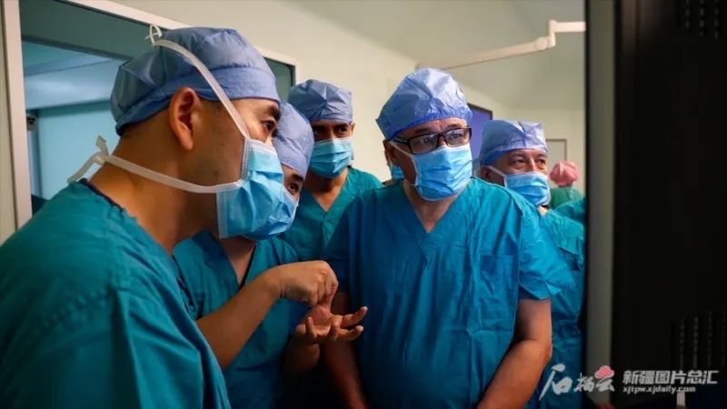 7月28日,来自乌兹别克斯坦的骨科专家与自治区中医医院骨二科主任方锐(左一)交流手术方案。马莹摄
