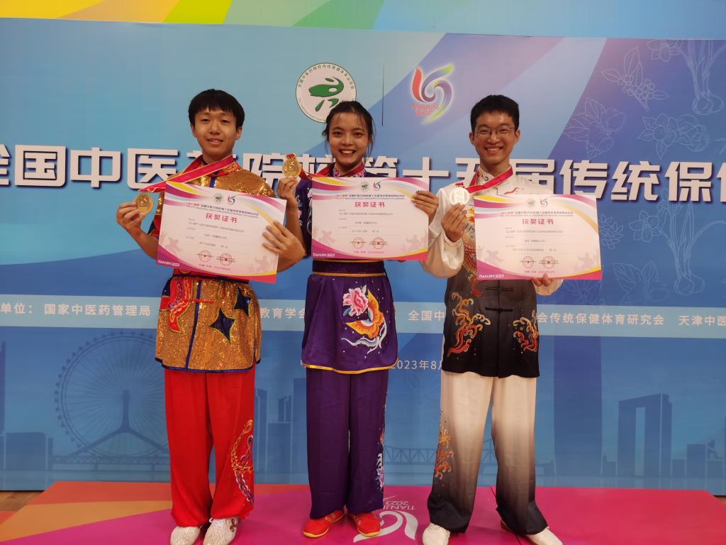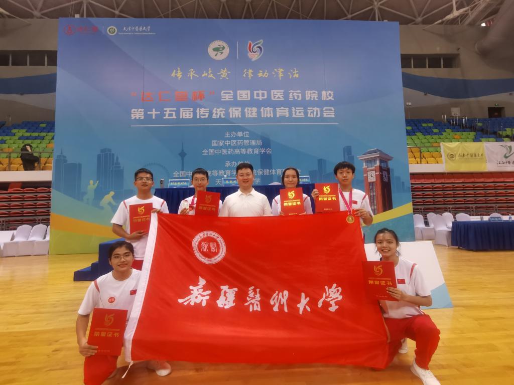 8月14日-17日,“达仁堂杯”全国中医药院校第十五届传统保健体育运动会在天津中医药大学举行。我校武术代表队选派六名优秀运动员参加比赛,获得了全国B组男子传统软器械、女子传统二类拳两枚金牌,男子42式太极剑一枚银牌,此外还获得1个第四名、1个第五名、1个第六名的优异成绩,取得历史性突破,我校代表队荣获此次赛事“体育道德风尚奖”。
