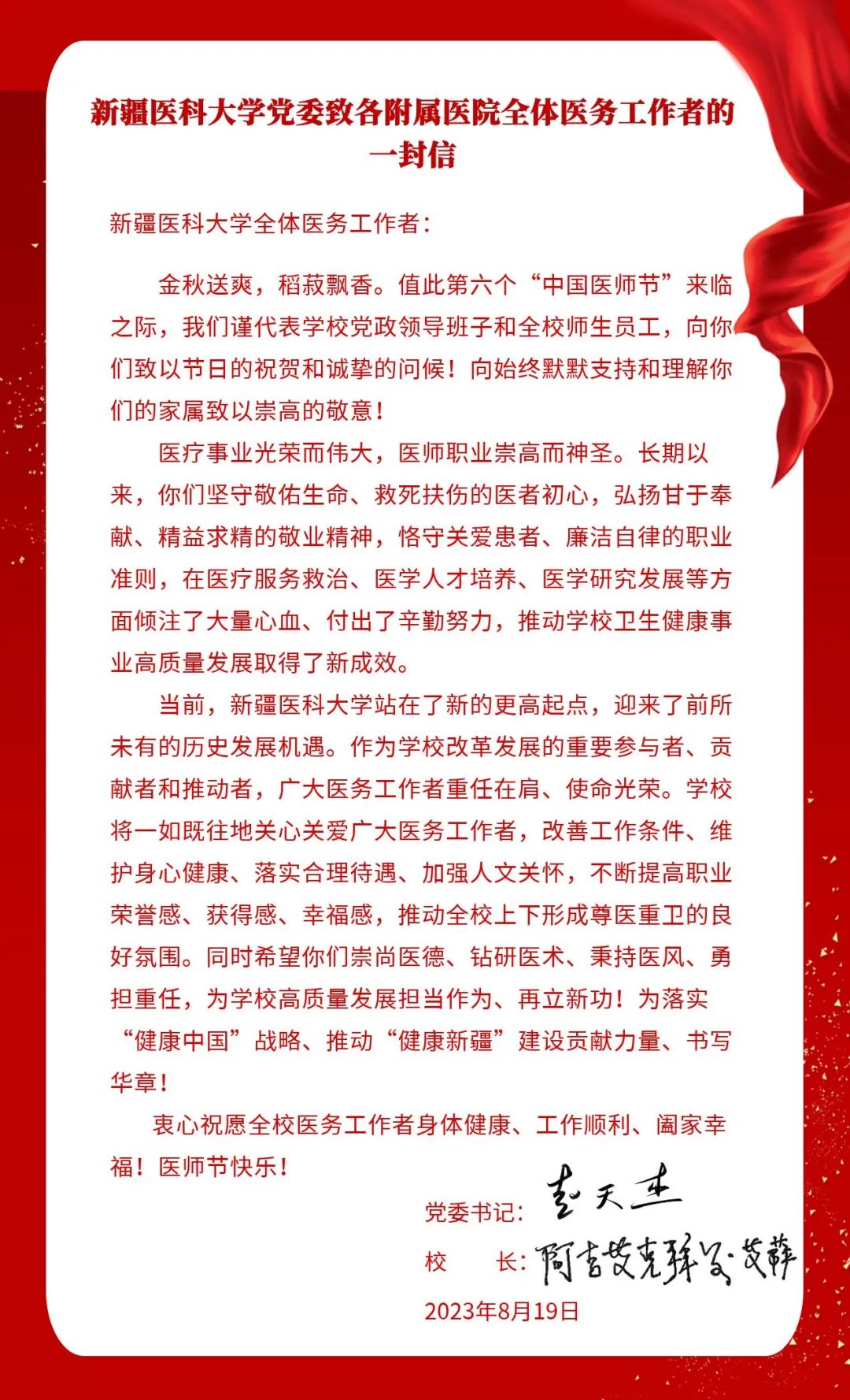 新疆医科大学党委致各附属医院全体医务工作者的一封信