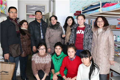2016年12月29日下午,副校长耿直,学生处副处长郑平、祖克拉和药学院党委书记热娜·卡斯木、院长李莉,副书记塔吉丁·热西丁,副院长李岩一行,来到女生四号公寓和男生九号公寓,对药学院的学生进行慰问。领导们带着厚厚的棉衣为同学们送去关爱和温暖。