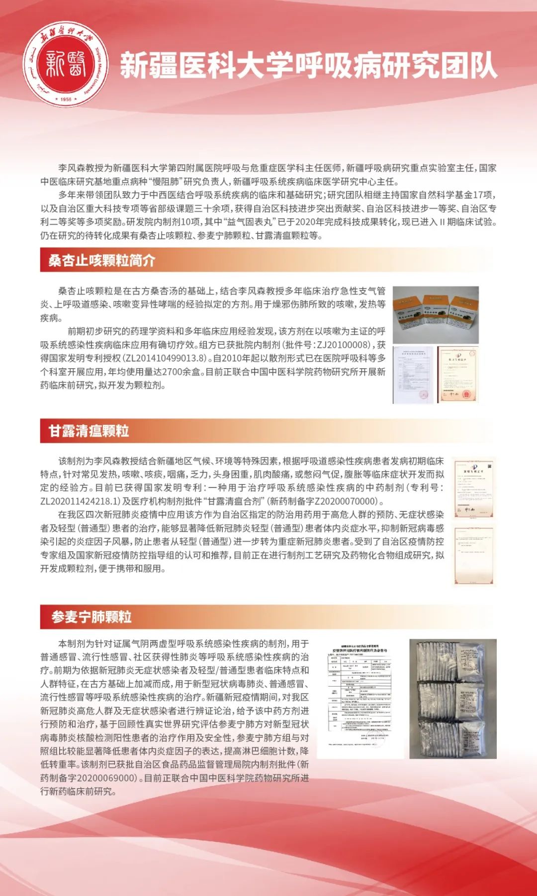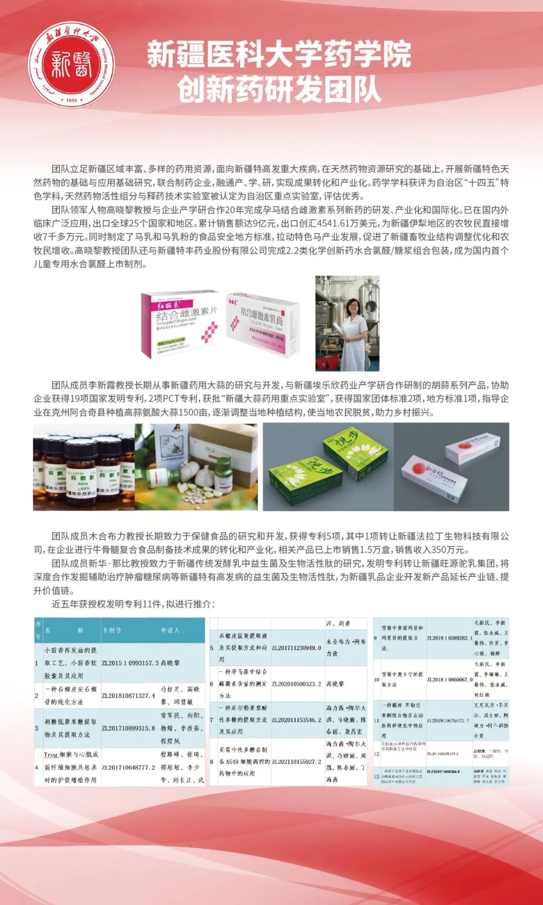 9月15日,在2023亚欧博览会·教育国际论坛上,新疆医科大学通过展板、实物等方式,展示了李风森教授团队通过临床和基础研究的待转化成果,包括桑杏止咳颗粒、甘露清瘟颗粒和参麦宁肺颗粒。展示了我校药学团队利用新疆孕马资源开发的原料药和制剂,依托药食兼用资源开发的胡蒜、番茄等食字号产品得到现场专家的好评,同时依托中乌医药科技城科研开发平台获批的药物海外注册批件,为新疆医药产品进入中亚国家起到示范与引领作用。