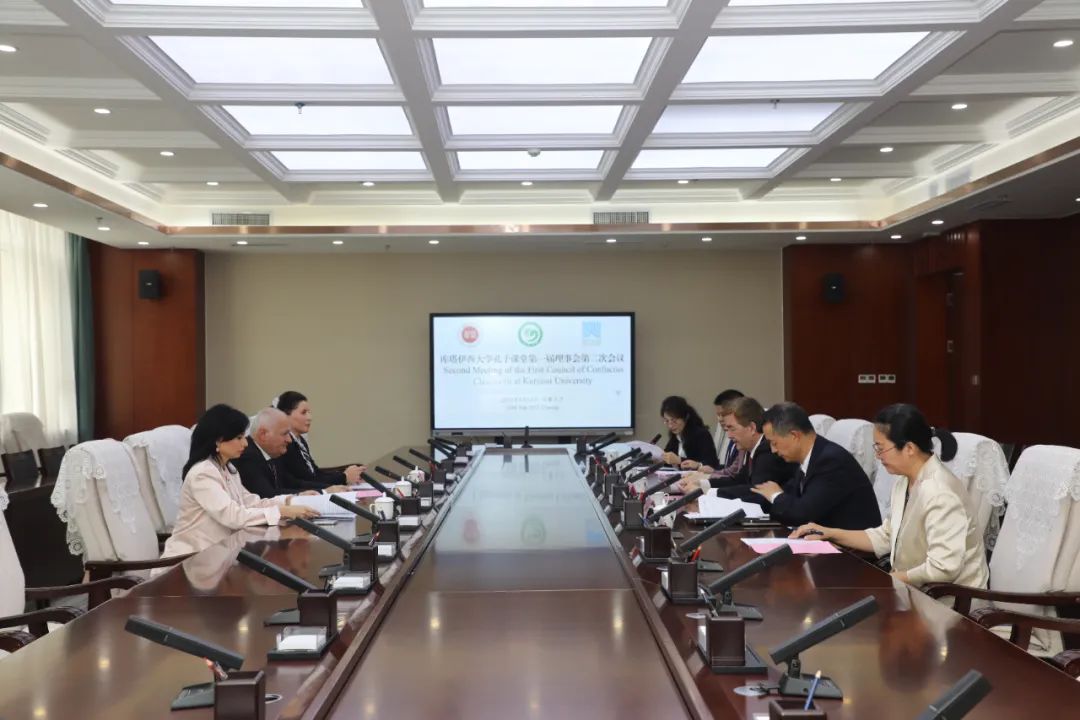 近日,由我校合作建设的格鲁吉亚库塔伊西大学孔子学院(课堂)第一届理事会第二次会议在我校召开。