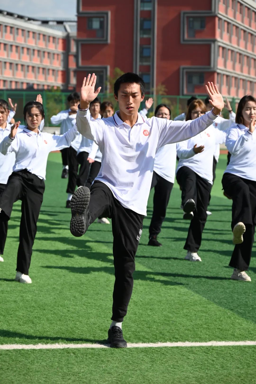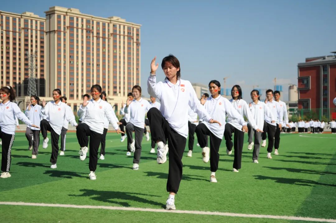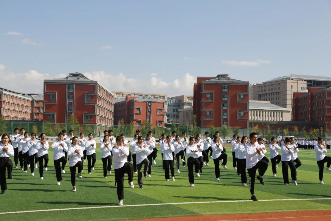 9月27日下午,新疆医科大学首届中华传统体育“武术”节暨“太极拳”校园比赛在田径场举行,全校16个学院近千名新医学子现场表演了集体“太极拳”。