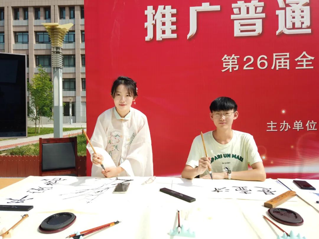 在第26届普通话推广周期间,我校人文学院在雪莲山校区芳林广场陈设推普周宣传文化墙,开展书法作品展示、艺术书签撰写等文化体验活动,发放国家通用语言文字宣传手册等,积极宣传国家通用语言文字。