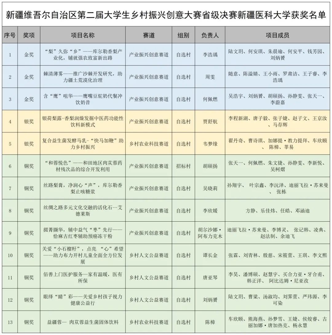 近日,自治区第二届大学生乡村振兴创意大赛省级决赛举办,我校荣获3金2银8铜的好成绩,并获优秀组织奖。