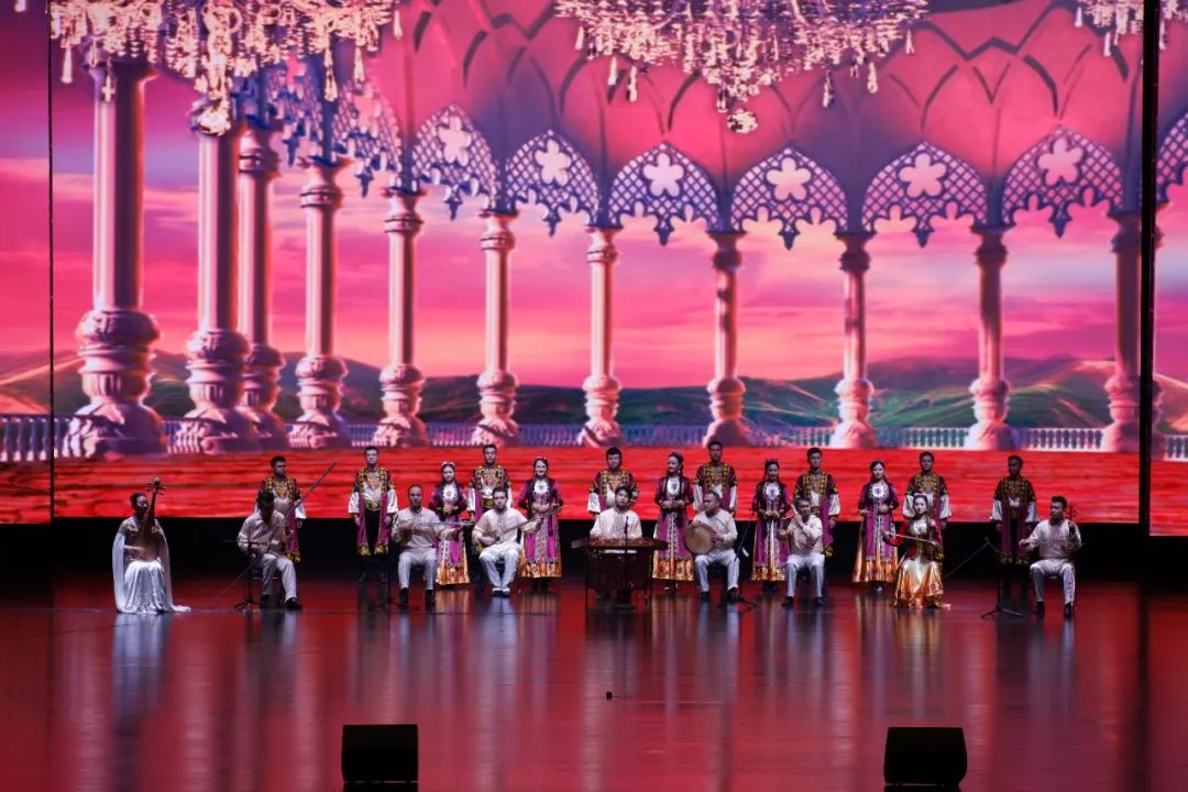 木卡姆表演《且比亚特木木卡姆片段》分外抢眼,演员们用特有的曲调、高亢粗犷的唱腔和刚劲有力的舞姿,让全场和着音乐击节鼓掌。