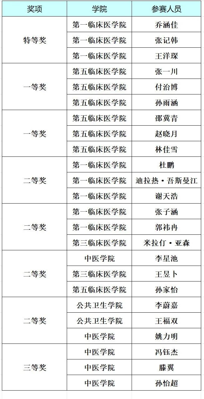新疆医科大学获奖名单