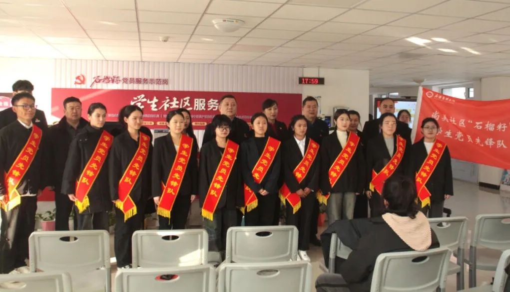石榴家园学生社区服务站举行党员服务示范岗启动仪式,学生党员一起重温入党誓词,号召大家要树立良好形象,充分发挥模范带头作用。