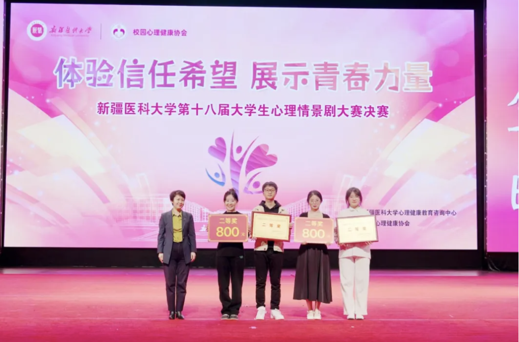 决赛中,新疆农业大学心理中心专职教师田金艳老师,新疆工程学院心理健康教育与辅导中心主任张艳梅老师,中国心理学会临床与咨询心理学注册心理师李湘老师,乌鲁木齐市一中心理教育指导中心主任李薇老师,新疆艺术学院表演系教师、新疆艺术家协会影视部主任高月老师担任大赛评委。来看获奖名单:
