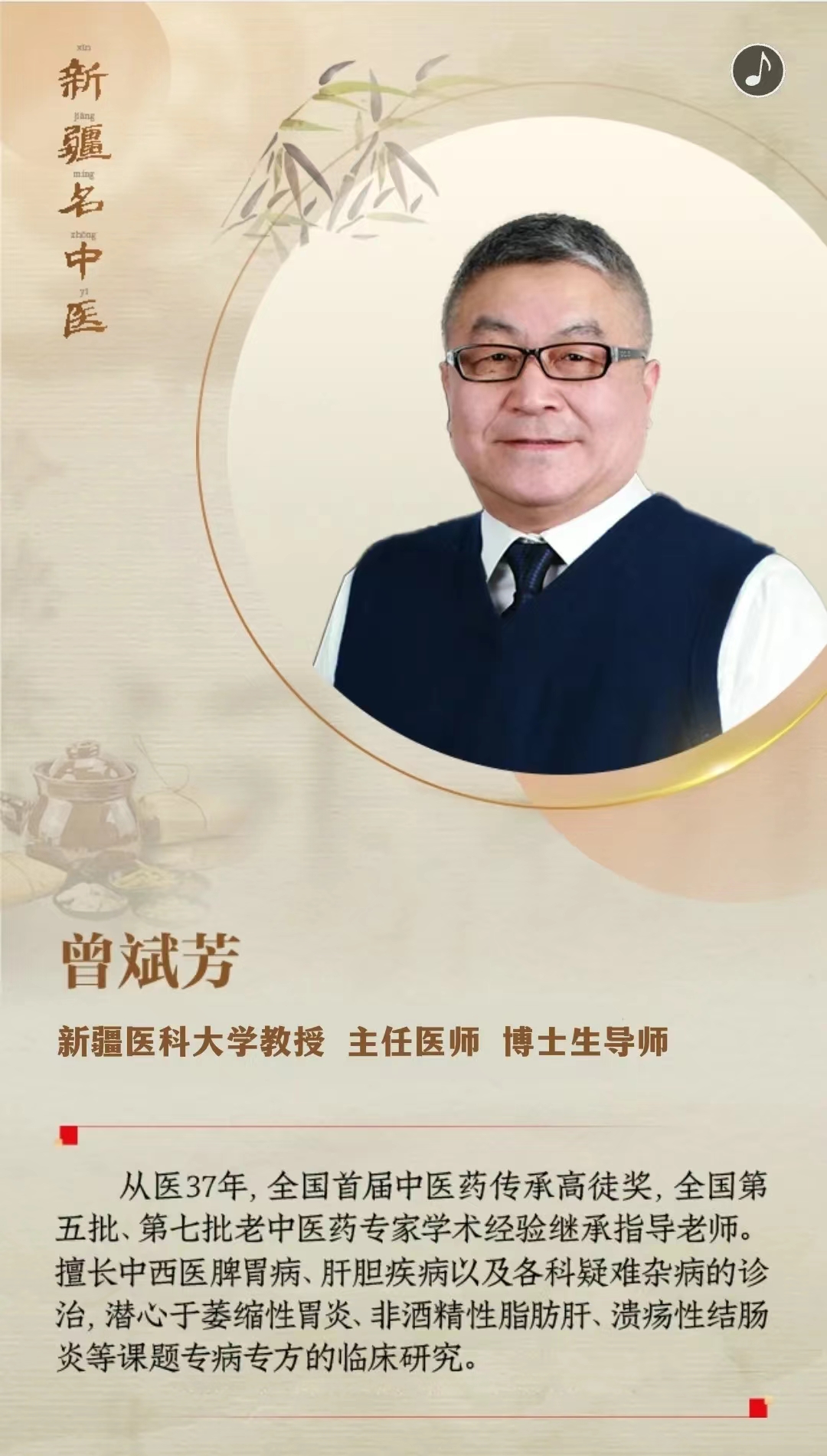 在前不久召开的自治区中医药高质量发展大会上,26位获得第二届新疆名中医称号的专家受到表彰,新疆医科大学10位专家榜上有名!他们分别是:安冬青、曾斌芳、张星平、李风森、陆明、吕书勤、胡晓灵、王晓峰、辛效毅、霍迎春。