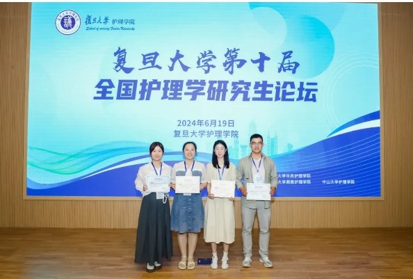 6月19日,“复旦大学第十届全国护理学研究生论坛”在复旦大学上海医学院召开。我校护理学院4名博硕士研究生参加论坛,与来自全国48所高校护理领域的专家学者、研究生进行学术交流研讨。其中博士研究生赵越(导师:李映兰教授、颜萍教授)和硕士研究生周娟(导师:苏建萍教授)入选此次会议的口头汇报,分别荣获三等奖和优胜奖。硕士研究生王志伟(导师:董正惠主任护师)和硕士研究生李博雅(导师:李映兰教授)入选壁报展示,分别荣获一等奖和二等奖。