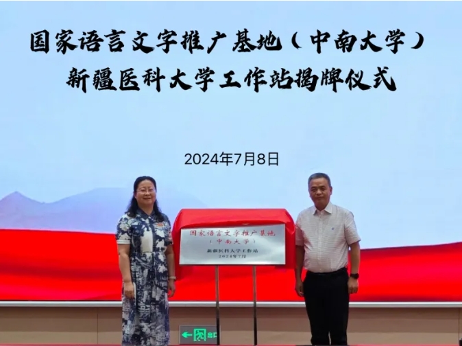 7月8日,中南大学人文学院党委书记罗军飞一行来到我校交流座谈,并举行国家语言文字推广基地(中南大学)新疆医科大学工作站揭牌仪式,副校长刘涛出席座谈会,校党委常委、宣传部部长林素兰主持会议。