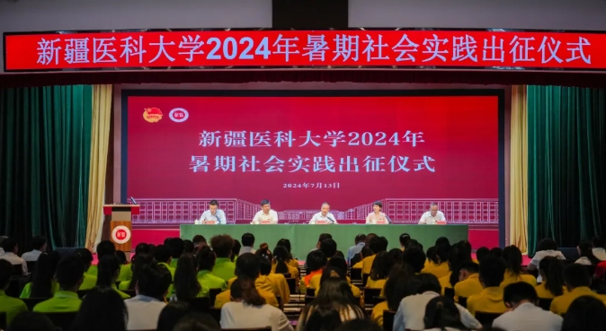 出征仪式上,学工部部长、学生处处长马翠宣读了2024年新疆医科大学暑期社会实践项目立项结果,我校共有5个校级实践队,32个院级实践队获批立项。