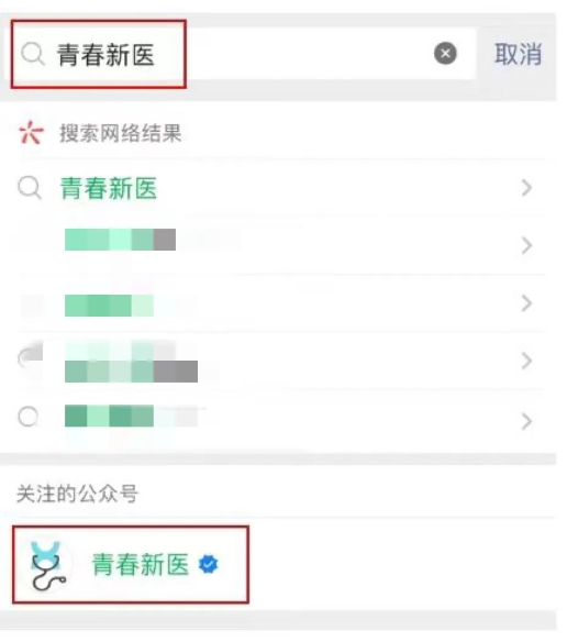 01搜索关注“青春新医”官方微信公众号。