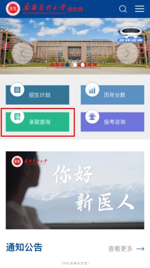01通过电脑或手机端进入“新疆医科大学招生网”,网址:https://welcome.xjmu.edu.cn