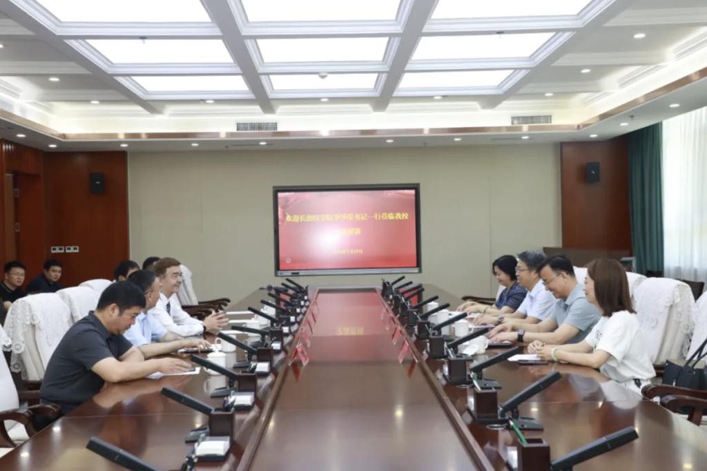 7月27日,长治医学院党委书记李华荣,党委副书记、校长王金胜一行来我校参观调研,与校党委副书记、校长阿吉艾克拜尔·艾萨交流座谈。
