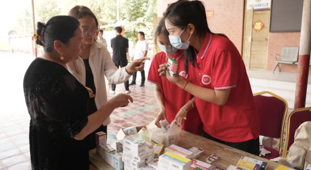 7月21日,新疆医科大学由52名志愿者组成的服务队来到墨玉县芒来乡阿克塔木村,开展“医路向南、健康和田”为主题的社会实践活动。在义诊现场,来自各附属医院的专家们与学生们紧密合作,为村民们提供了骨科、妇科、口腔科等多个领域的医疗服务。学生们不仅协助医生进行问诊,还主动承担起药品分发、健康宣传等工作,用实际行动诠释了“医者仁心”的深刻内涵。