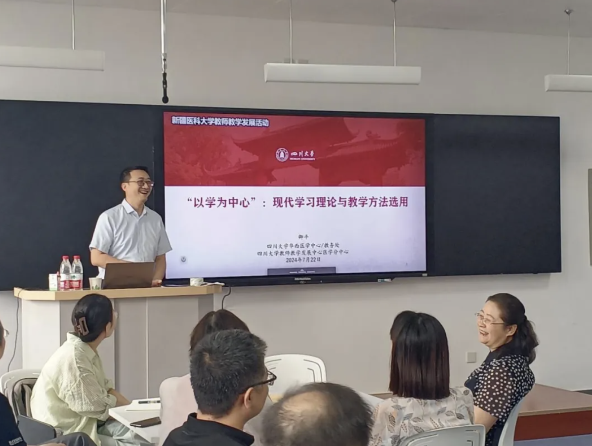 7月22日至25日,新疆医科大学特别邀请了四川大学华西医学中心医学教学部卿平部长、四川大学华西二院筑浪学院闫昱江院长以及柴桦老师,为我校教师开展了7个不同专题的教学培训活动,助力2025级临床医学“5+3”一体化试点班医学整合课程模式改革,为提升广大新医教师对医学教育教学方法的全面认识、对学生学业评价体系的深刻理解与准确把握提供帮助和指导。新疆医科大学副校长刘涛参加了开班式并讲话。