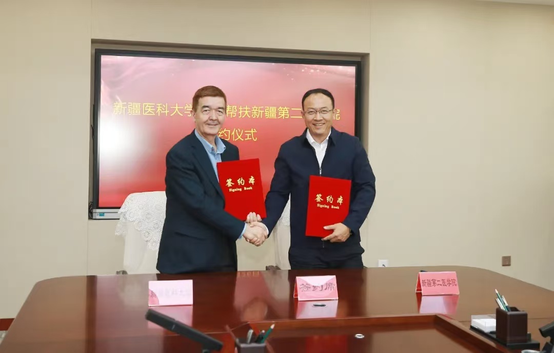 9月26日,为认真落实《自治区普通本科高校对口帮扶工作实施方案(2024-2030年)》,新疆医科大学与新疆第二医学院商洽对口帮扶工作并签署对口帮扶协议。