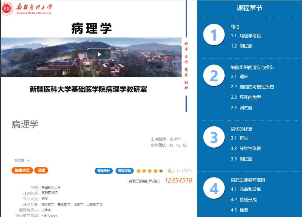 我校“病理学”课程于2020年获批国家级首批线下“一流本科课程”,2021年获批新疆首批课程思政示范团队。经过三年的建设,目前已建有病理学课程思政案例库、基本契合执业医师大纲的案例库、题库,以及融合思政的病理学教案。