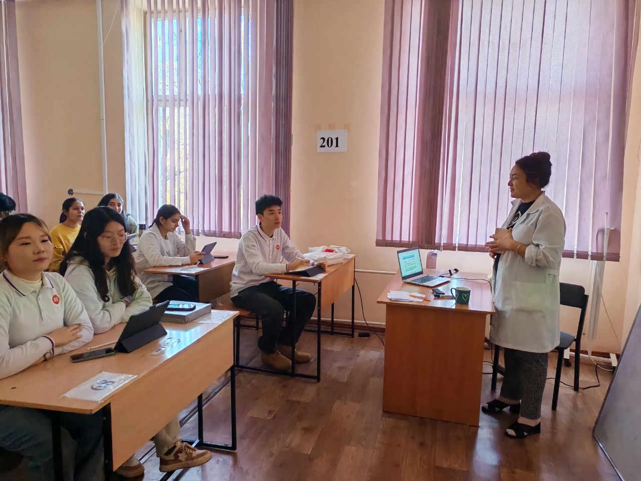 在哈萨克斯坦阿里-法拉比国立大学的校园里,访学团的同学们积极融入多元文化环境,与世界各地不同文化背景的同学们共同上课、热烈讨论。在药理学课堂上,新医学子们聆听专业知识讲解,感受不同教学风格下知识的传递;在流行病学课堂上,同学们深入探讨疾病传播规律与防控策略,思维在交流碰撞中不断拓展。
