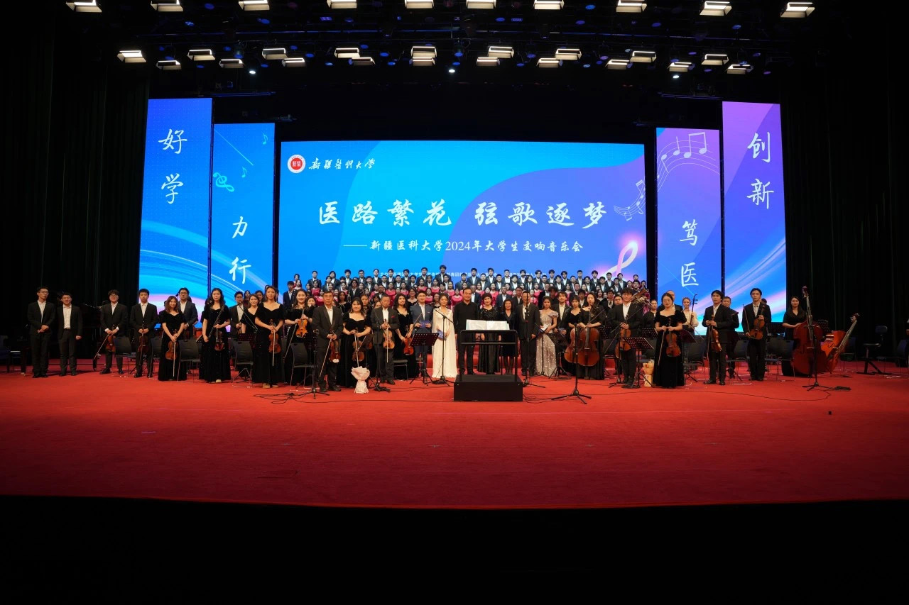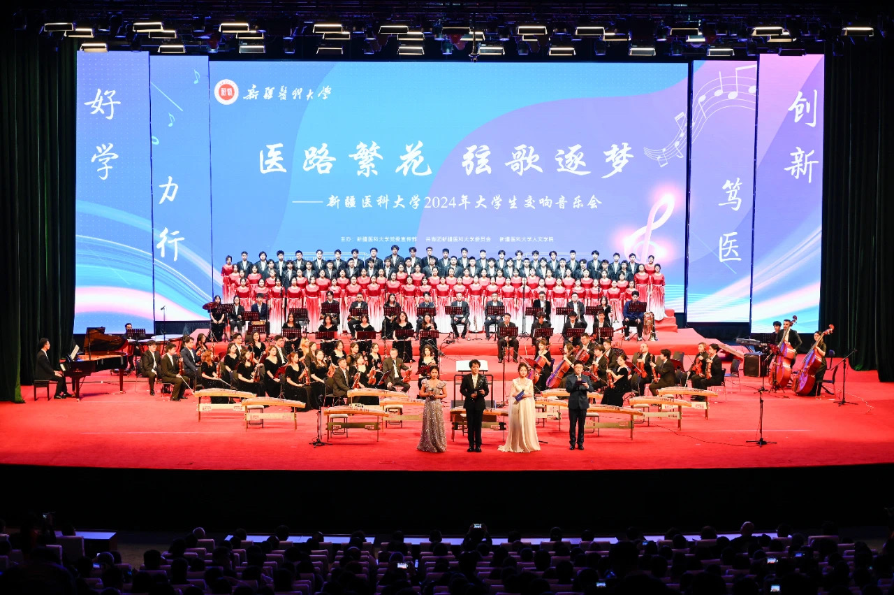 12月4日晚,新疆医科大学文创中心礼堂里灯光璀璨、座无虚席,由校党委宣传部、校团委、人文学院共同举办的新疆医科大学“医路繁花,弦歌逐梦”2024年大学生交响音乐会在这里隆重开场。优美的合唱、震撼的交响、感人的朗诵、悦耳的民乐,将现场观众代入了一场令人陶醉的艺术盛宴!