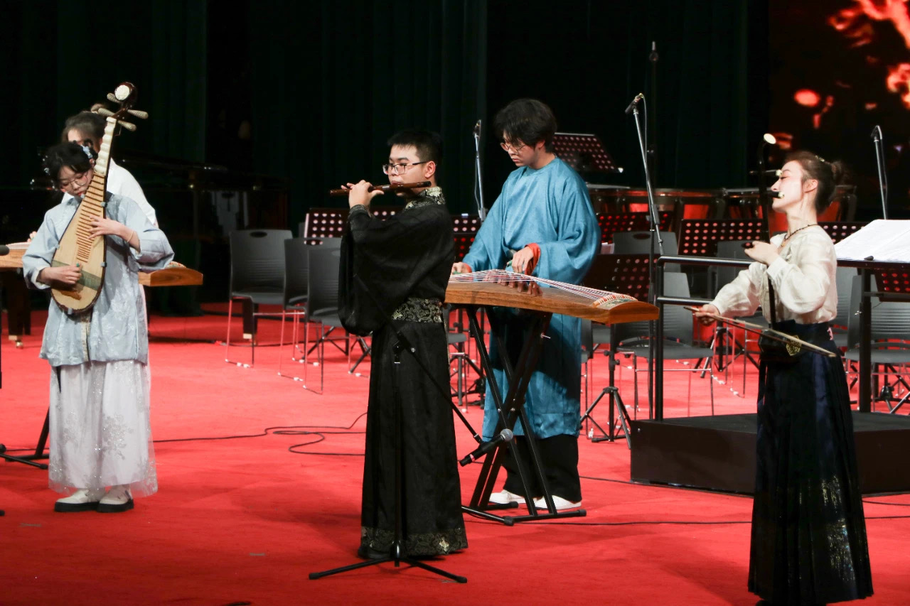 数千年的传统民乐文化孕育滋养了一代代中国人,当古典音乐流泻而出的一刹那,高山、流水、丝竹、冬雪的旋律和谐奏响,《喜洋洋》《大中国》的民乐合奏带领着观众跨越时空,传递出那份说不出、道不尽的感动,展示着中国古典器乐绕梁三日之美,一点点浸润了新医师生的心灵。