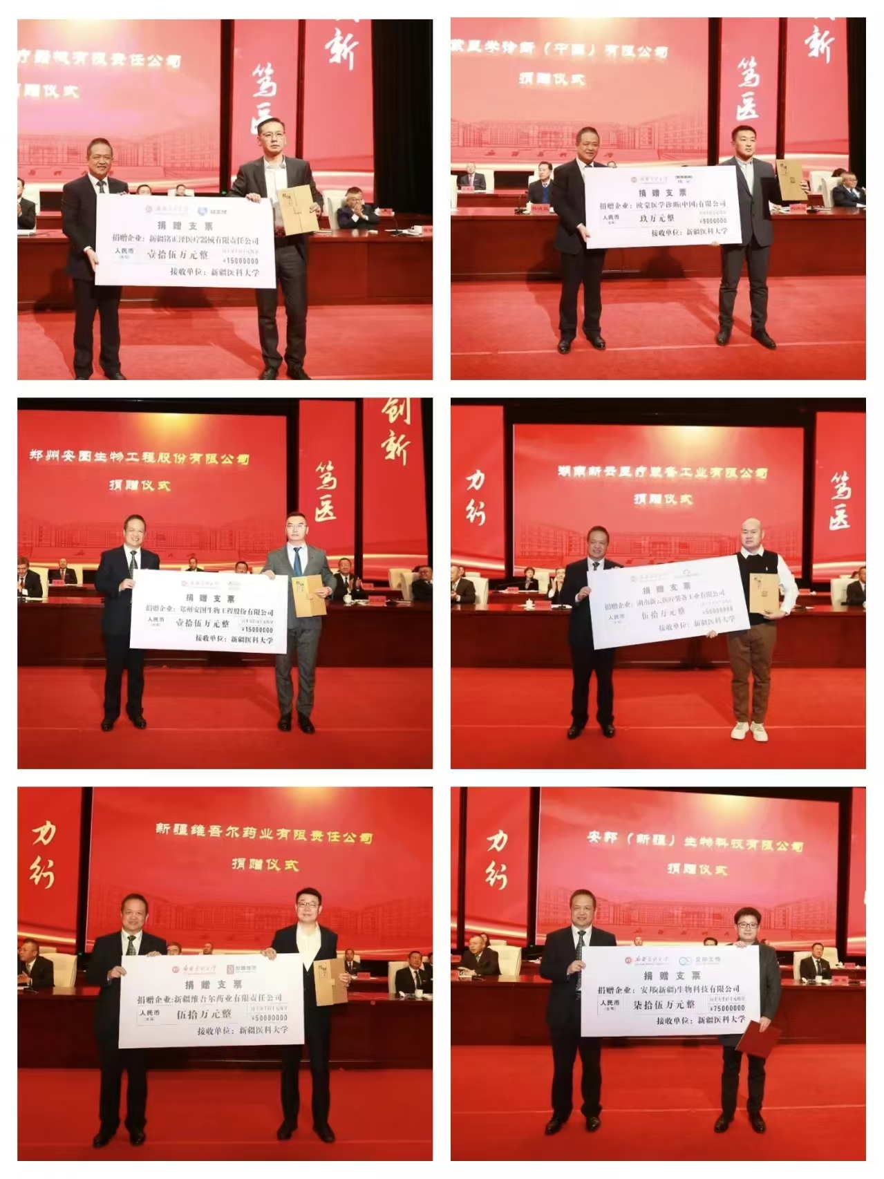 会议举行了启动助力学生成长成才爱心捐赠仪式,新疆维吾尔药业有限责任公司、安邦(新疆)生物科技有限公司、湖南新云医疗装备工业有限公司、郑州安图生物工程股份有限公司、欧蒙医学诊断(中国)有限公司、新疆铭正泽医疗器械有限责任公司,六家企业向我校捐赠了助力学生成长成才爱心基金。
