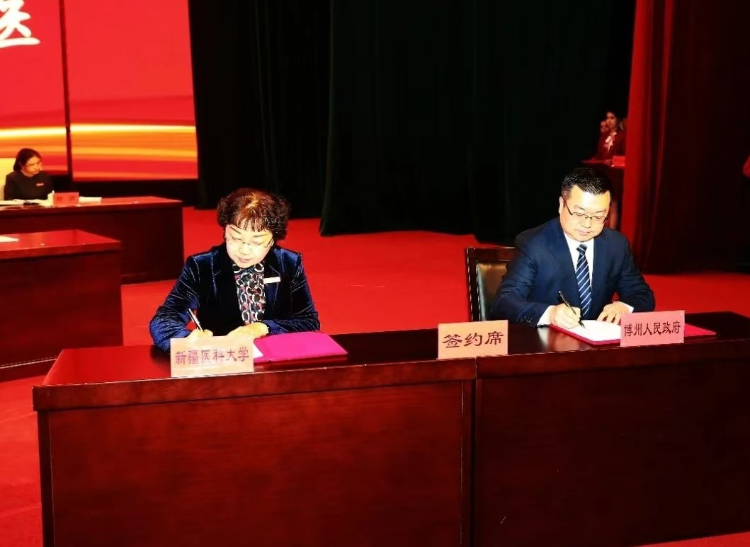 校党委常委、副校长杨新玲代表学校分别与博尔塔拉蒙古自治州人民政府、乌鲁木齐高新技术产业开发区管理委员会(乌鲁木齐市新市区人民政府)、乌鲁木齐食用菌研究所签订了战略合作协议。
