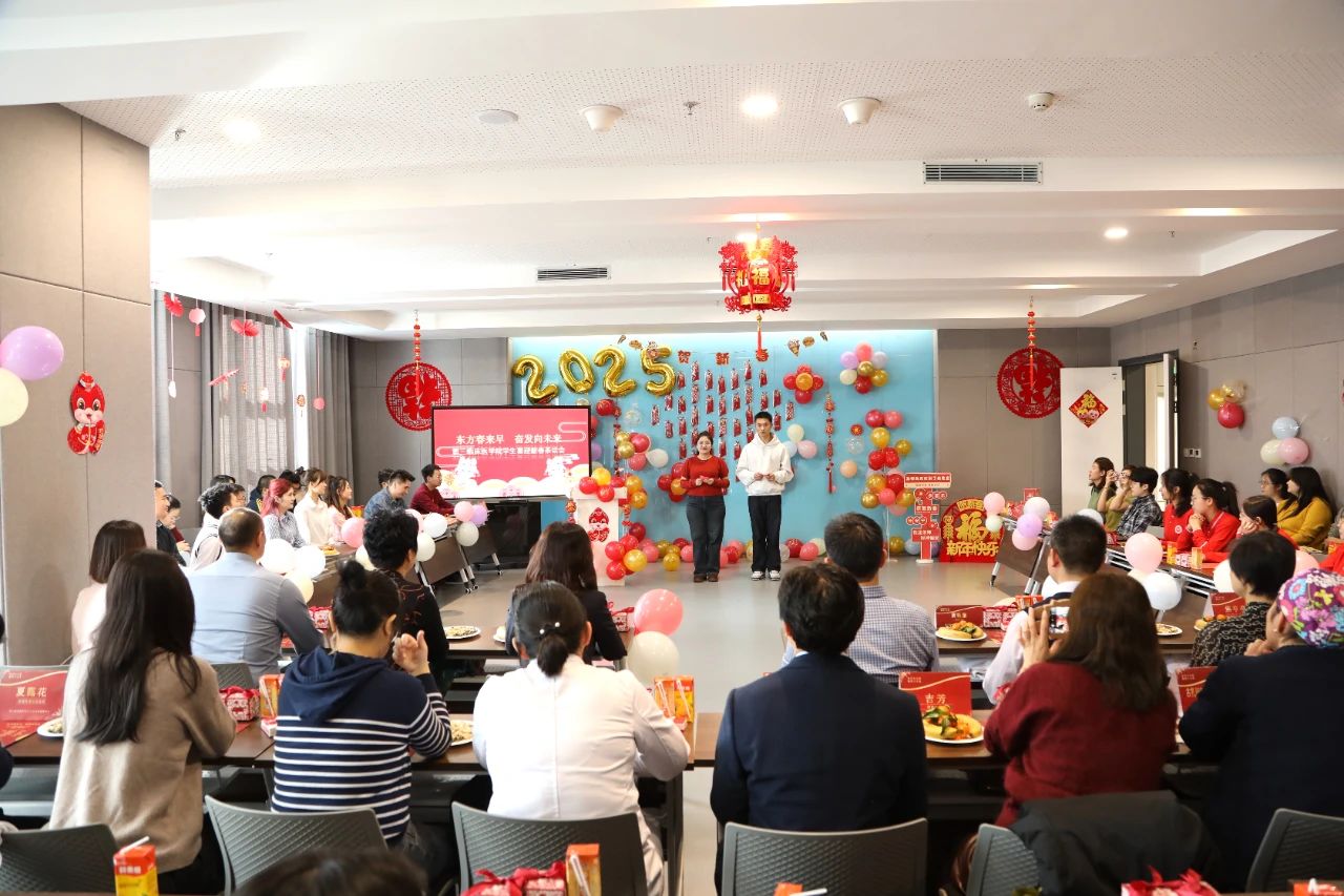 第三附属医院(第三临床医学院)举办了“东方春来早·奋发向未来”师生喜迎新春茶话会。师生代表分享了工作、学习、生活中的点滴故事,师生间的情谊在这一悄然升温。在节目环节,大家用歌声传递美好,用舞蹈展现青春活力,师生代表共同书写新春对联,将美好的祝福融入笔墨之间,表达对新年的美好祝愿。