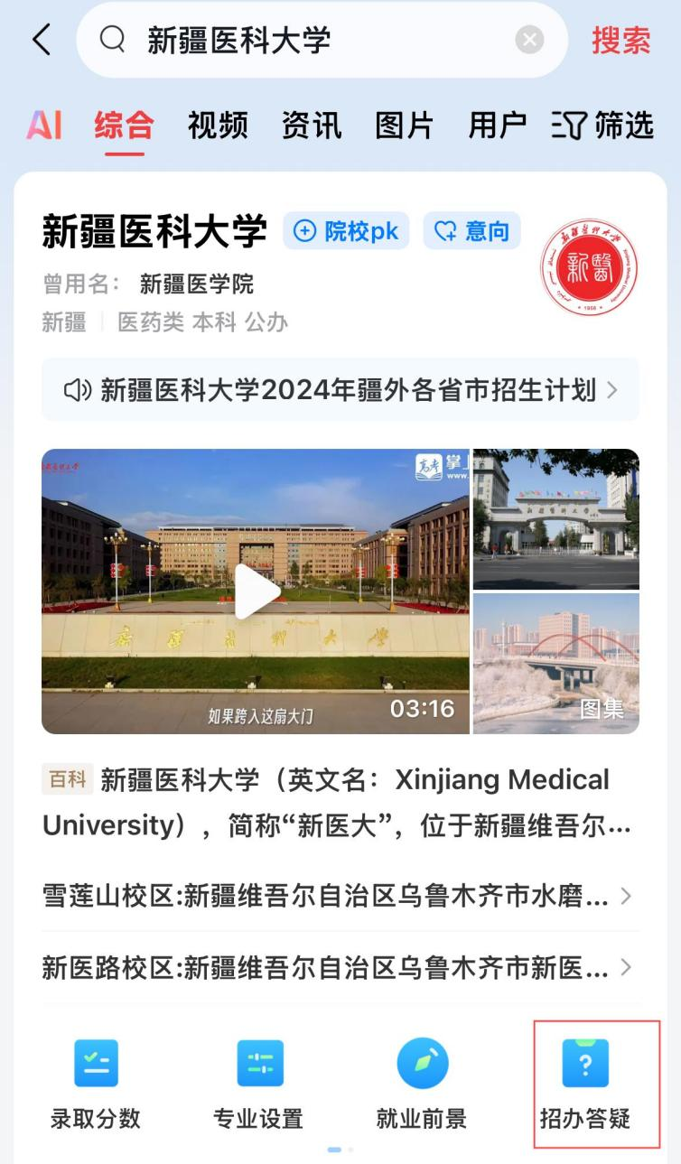 各位学子及家长可通过新疆医科大学招生官网进行在线咨询。咨询方式:登录新疆医科大学招生官网(网址:https://welcome.xjmu.edu.cn/),点击右侧“智能机器人小E”,在登录界面完善基础信息后即可在线咨询或留言。(操作详情见下图)