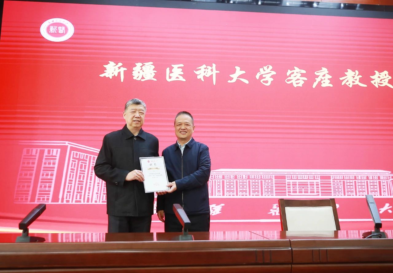 新疆医科大学党委副书记李剑峰为张克非教授颁发了新疆医科大学客座教授聘书