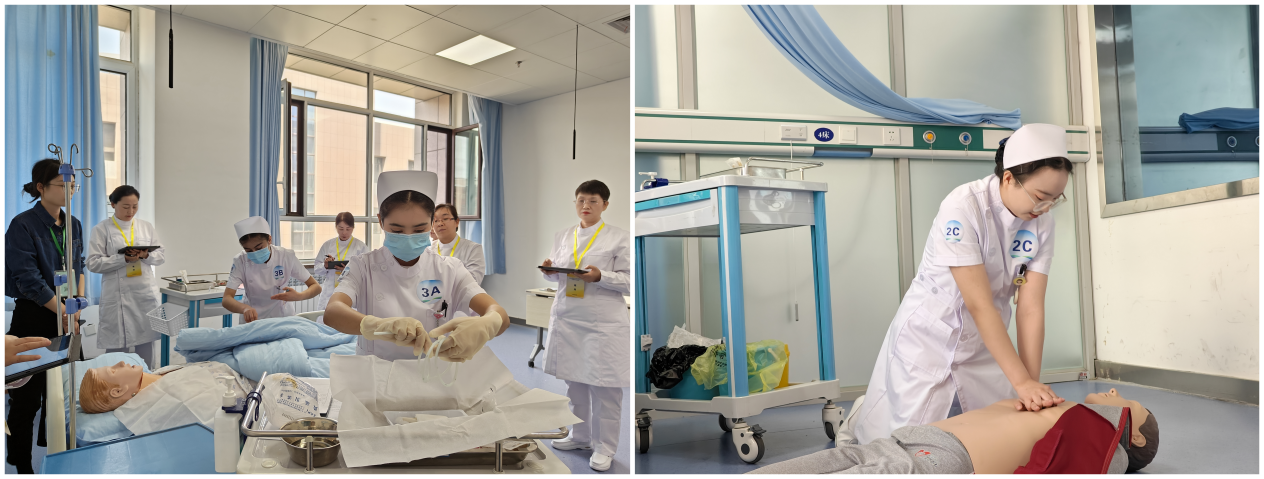 护理学赛道:选手们操作轻柔规范,细致入微,以精湛的护理技术和满满的爱心,处处体现着对患者的关怀,充分展现出了专业且温暖的一面,诠释着护理学的专业内涵与人文精神。