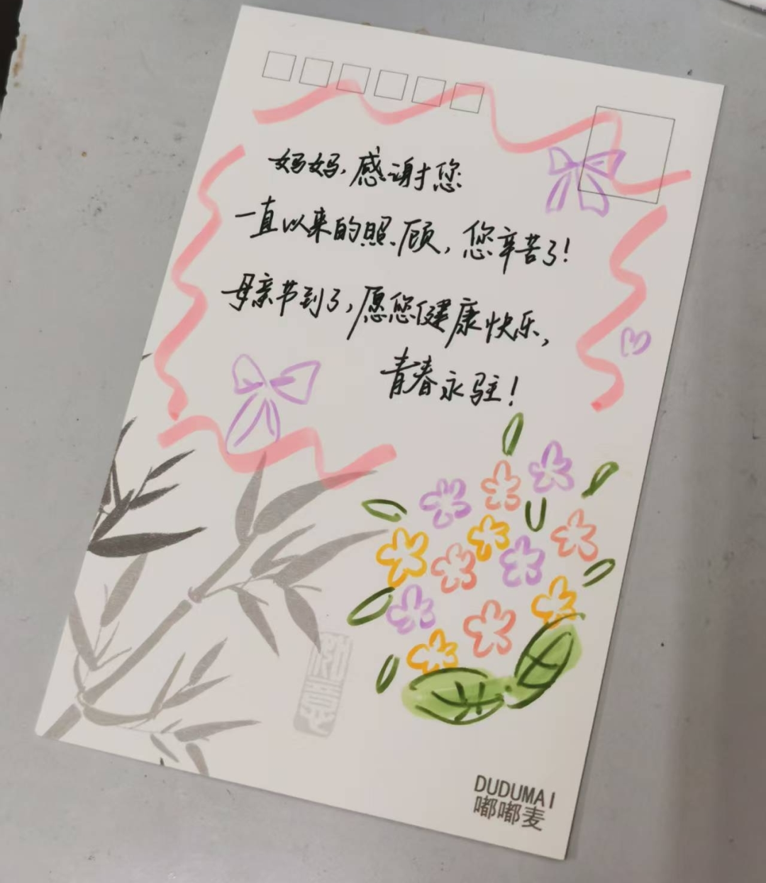您不是超人,却为我无所不能。清晨的早餐,夜晚的温暖,难过时的安慰,泄气时的鼓励,都是您默默的爱。黑发变白了,皱纹变多了,全是为了我长大。五月晴天里,愿您少些辛苦和烦恼,多些笑容。妈妈,谢谢您!要健康,要开心,每天都是好日子。