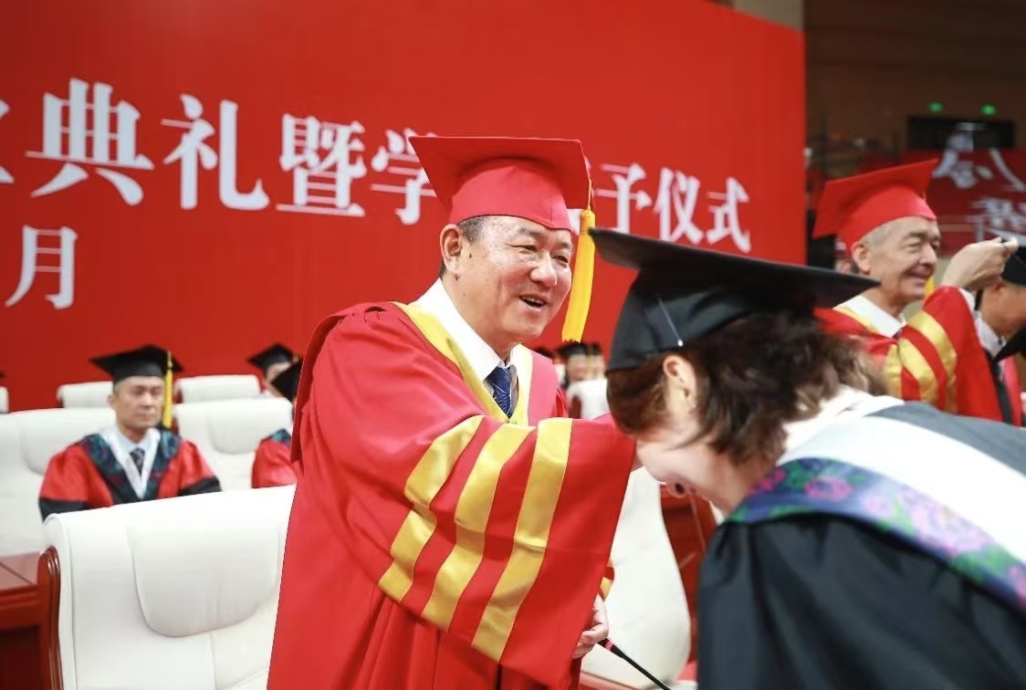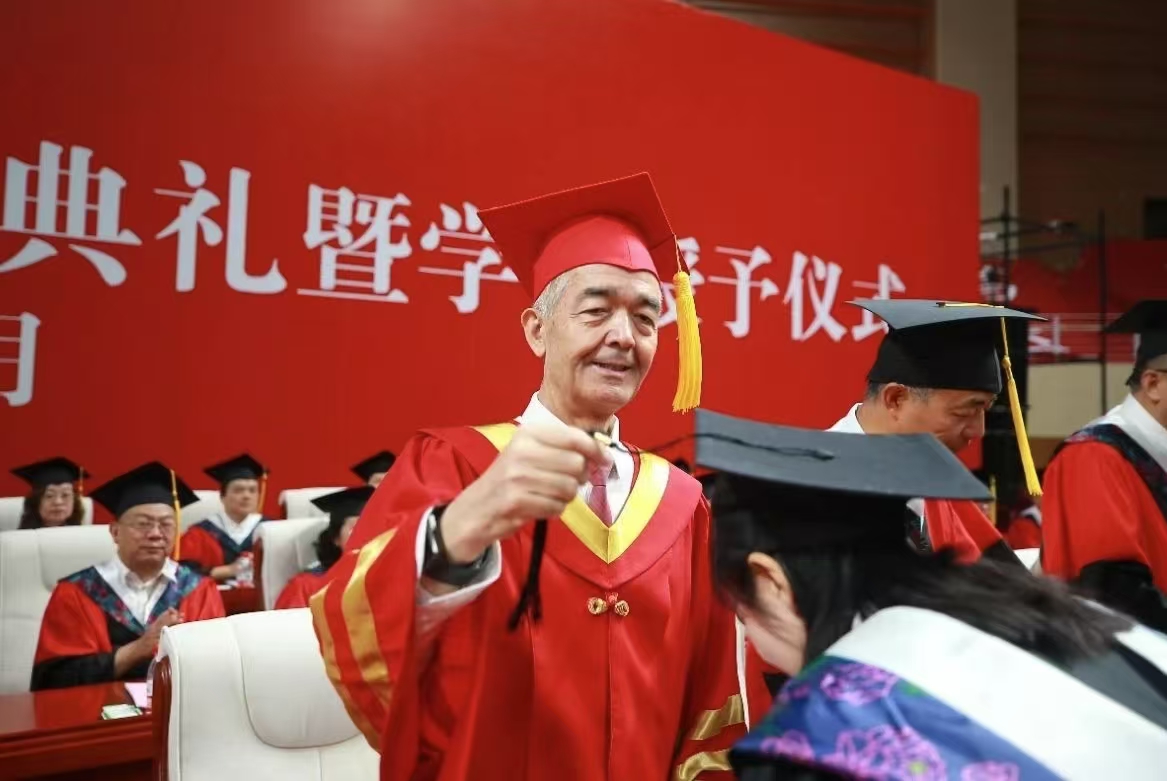 校领导为2025年毕业生代表颁发学位证书,将金色的流苏拨过帽檐,传递着母校对莘莘学子的美好祝福与殷切嘱托。