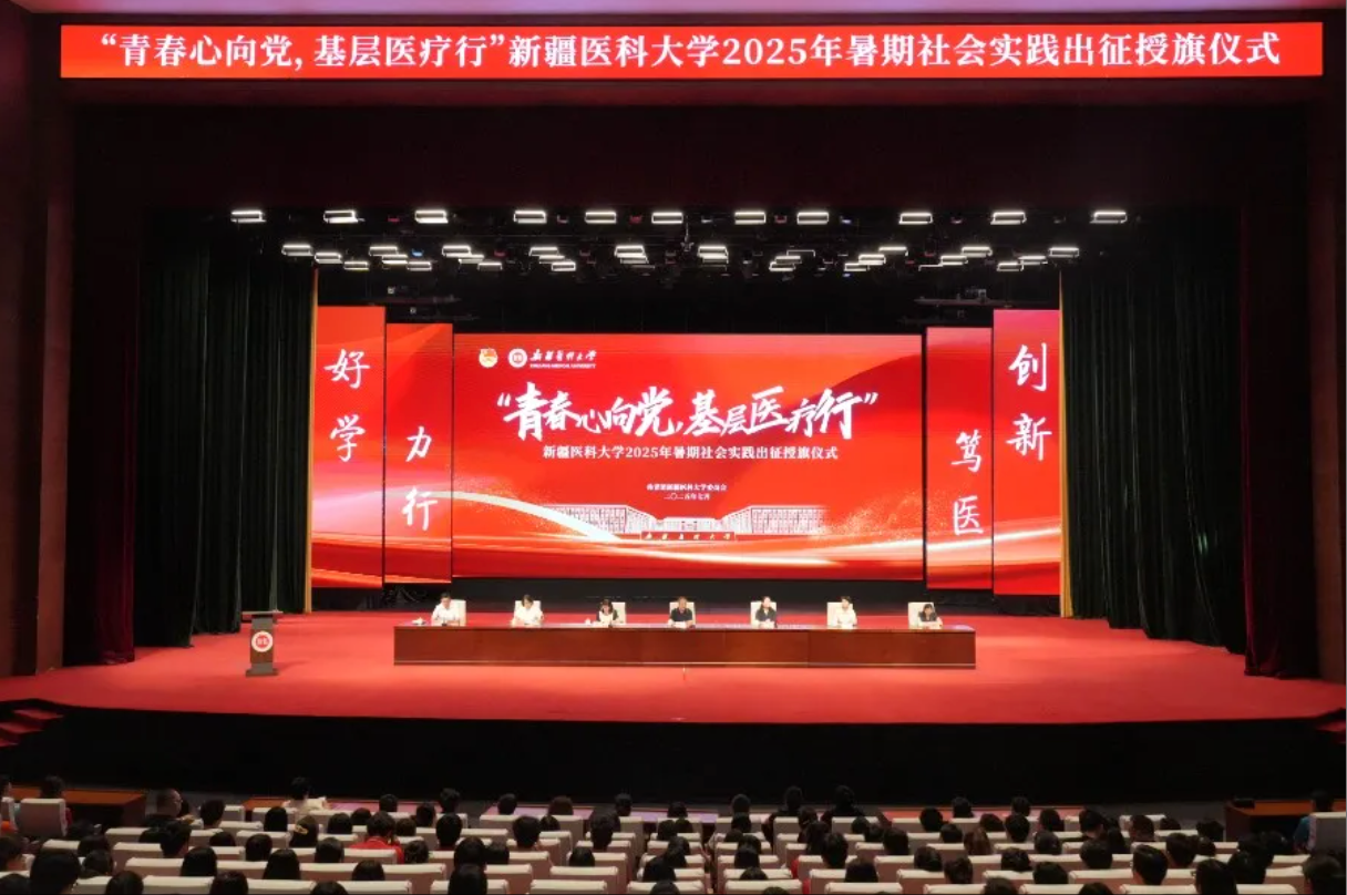 新疆医科大学2025年暑期社会实践以“青春心向党 基层医疗行”为主题,是近年来我校参与队伍最多、学生规模最大的一次。全校共组建了7支校级实践队、52支院级实践队,1800余名师生将分赴全疆14个地州市及陕西、山东等地,深入基层开展形式多样的社会实践活动。同时,学校还积极鼓励广大新医学子结合专业特长与个人实际,在居住地基层医疗卫生机构就近开展“返家乡”社会实践活动,或参与创业就业相关活动,力求实现暑期社会实践全覆盖。