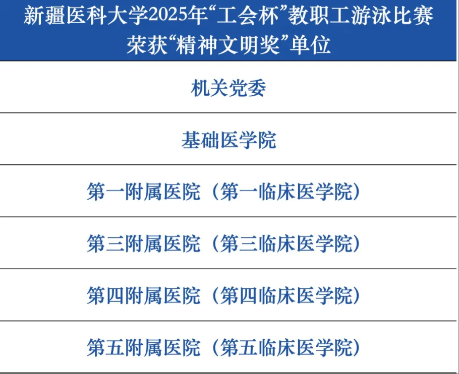 经过激烈的角逐,机关党委、基础医学院、第一附属医院(第一临床医学院)、第三附属医院(第三临床医学院)、第四附属医院(第四临床医学院)、第五附属医院(第五临床医学院)六家单位凭借出色的团队协作和文明参赛表现,荣获“精神文明奖”。