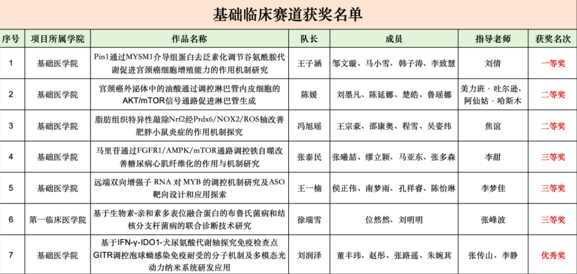 此次获奖充分彰显了我校以学生为中心、以新医科建设为引领、强化科教协同育人的显著成效。未来,学校将持续推进创新创业教育改革,打造优质创新创业平台,充分激发广大师生的参与热情,进一步加强与国内外高校及科研机构的交流合作,共同推动医学教育创新与发展,为培养更多具有国际视野和创新能力的高素质医学人才贡献力量。