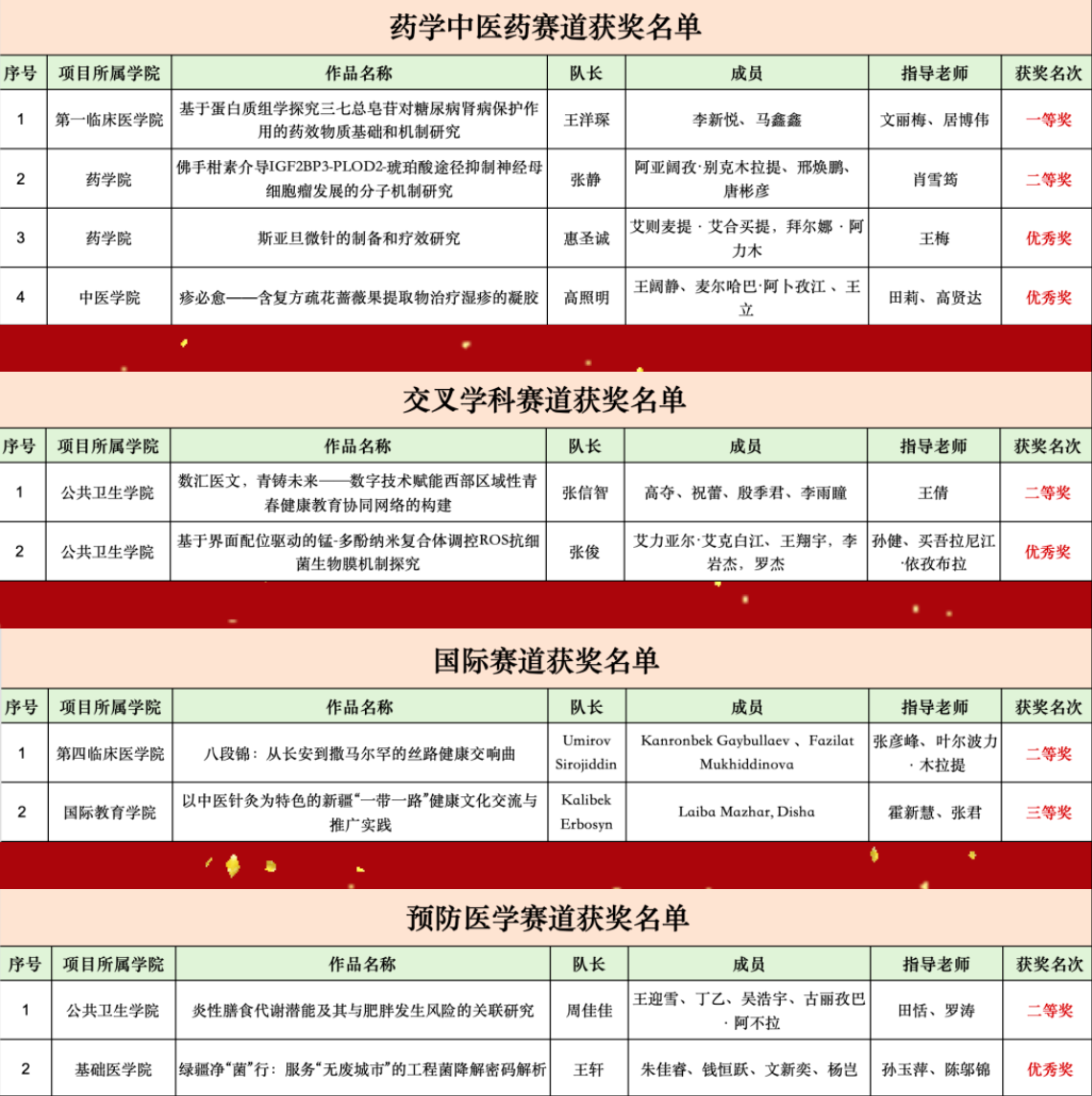 近日,在刚刚结束的第十一届全国大学生医学创新大赛暨“一带一路”国际竞赛中,我校参赛队伍斩获西部赛区复赛一等奖2项、二等奖8项、三等奖6项、优秀奖5项。其中,获得一等奖的2支队伍成功晋级全国总决赛,刷新了我校在该赛事的历史最佳成绩!