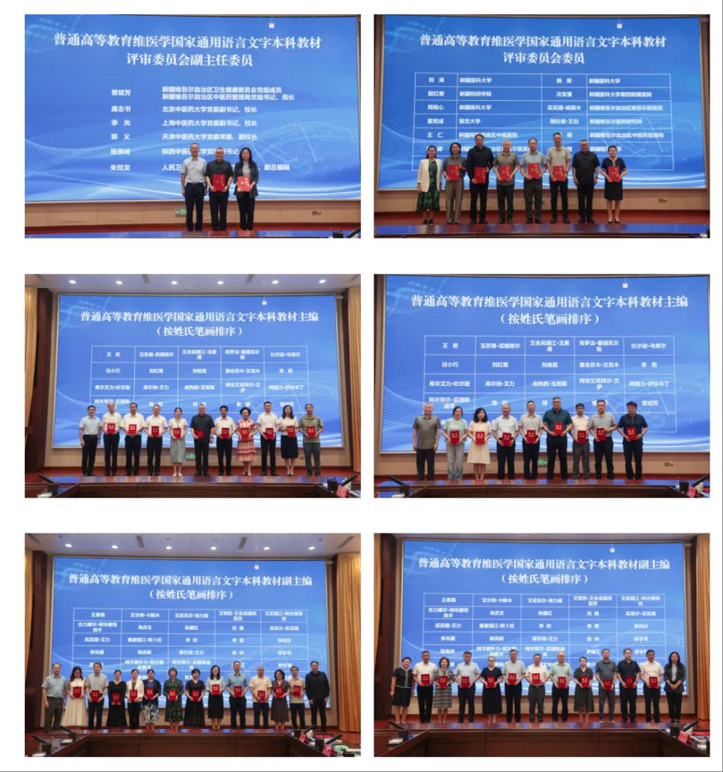 维医学专业国家通用语言文字本科教材的评审委员会成员与编写人员来自北京中医药大学、上海中医药大学、天津中医药大学、陕西中医药大学、新疆医科大学、自治区维吾尔医医院(自治区第二人民医院)等单位的专家学者。会议举行了聘书颁发仪式,正式聘请普通高等教育维医学国家通用语言文字本科教材评审委员会的主任委员、副主任委员及委员,以及系列教材的主编和副主编,受聘专家将肩负起教材编写与审定的核心重任。