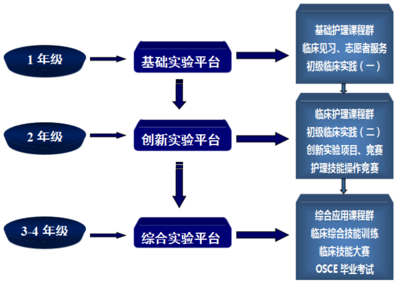 三阶“岗位适配”:针对社区护理、专科护理(如手术室、ICU)等细分岗位需求,通过临床见习、实习,完成从“学生”到“护士”的角色过渡,精准对接学生个人职业发展路径,助力多元化、专业化人才培养需求。