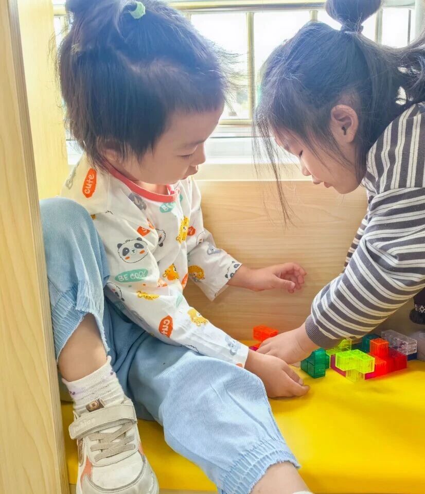 教室里,小朋友们围坐在色彩缤纷的活动区,在老师的耐心引导下,开始了有趣的手工制作。他们用稚嫩的小手揉捏彩泥,专注地完成属于自己的作品,眼中闪烁着创造的喜悦。随后,老师带领大家进行集体互动活动,孩子们手拉手围成一圈,伴随着轻快的儿歌节奏一起拍手、律动。在欢声笑语中,他们逐渐融入了热闹的氛围,跟着节奏摇摆身体,感受着融入集体的快乐。